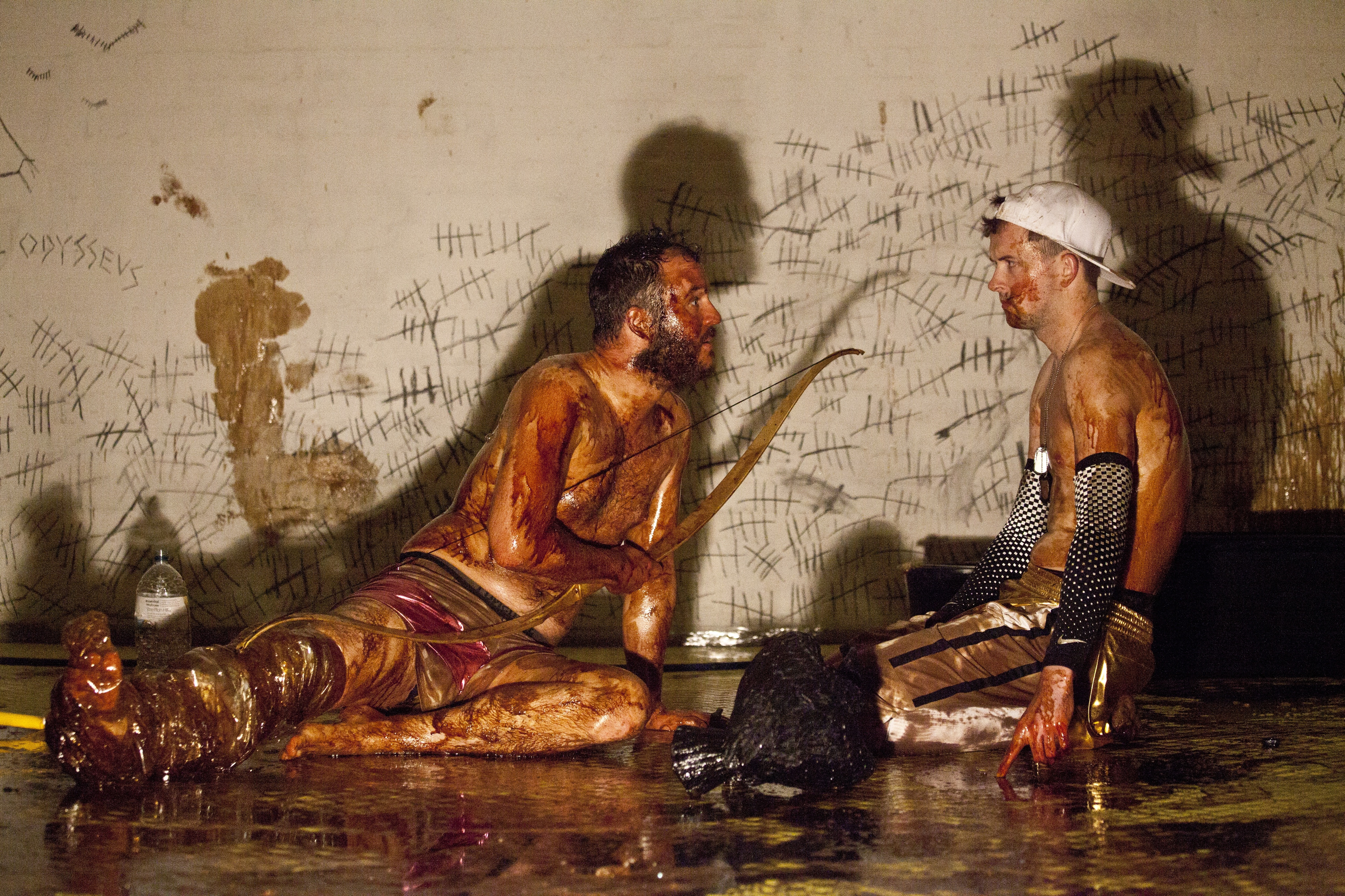 ...Shiny treacle pooling and glistening in the different beams of light that have been shifted about. And because The Yard is fucking freeee-eeeezing they’ve got these two orange heaters onstage that make a gorgeous glow too. Lovely..... So they get the bow and they leave the poor guy slumped in the corner with the lights going out all around him (I love the lighting in this show too fucking much, seriously), crying about how he won’t be able to eat because his magic bow killed goats and vultures for him and now he’s gonna waste away with his gangrene and the goats and vultures will eat him. I genuinely thought it might end there for a minute or two. The timing of it is just right. He whimpers in the corner just long enough for you to think “Shit man, this is totally why they call these things tragedies.” I was proper gutted, genuinely. But then! Hooray! The Sheffield boy-god has a conscience!....At the end there’s a brilliant, brilliant surprise, and a brilliant final beat that - again - is timed just right. But I wouldn’t want to spoil that moment for you with any more of this comprehensive and considered theatre criticism.